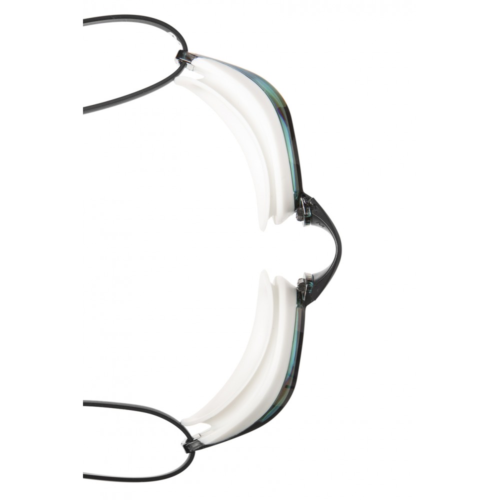 Su forma aerodinámica y su sello de perfil bajo reducen la resistencia al flujo de agua para una velocidad máxima. Las lentes irisadas y redondeadas mejoran la visión frontal y lateral para un mejor control de los oponentes. Se ajustan de forma cómoda y segura sobre las cuencas oculares y tienen un ajuste rígido para evitar que se salgan durante una salida o un giro brusco.  Las gafas incluyen tres puentes nasales intercambiables que permiten ajustarlas con mayor precisión a las características faciales individuales. La correa doble de silicona se ajusta fácilmente con un clip especial y las mantiene firmemente en la cabeza. Las lentes de policarbonato con protección UV protegen los ojos del nadador de los dañinos rayos UV. El revestimiento antivaho evita que la humedad se condense en las lentes.