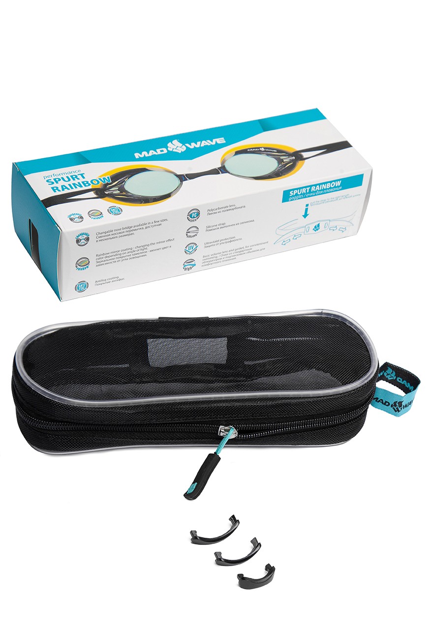 Las gafas SPURT RAINBOW de Mad Wave tienen un recubrimiento irisado, un cómodo sistema de ajuste de correa, revestimiento antivaho y protección UV 400. Incluyen, además, 4 puentes nasales intercambiables para un ajuste perfecto.